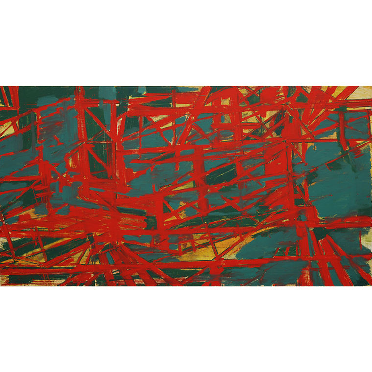 The first series of paintings from this period (2011-2015), which he brought together for a while under the heading ‘Stories’, started with an old postcard of a large wooden scaffolding. Then he was inspired by images of discarded machines (2014-2019) and old town panoramas (since 2019). This led to more varied shapes, in which, however, a greater clarity gradually appeared. It is as if the artist, even though his compositions are dynamic and restless, is developing a tendency towards a certain order, balance and clarity.